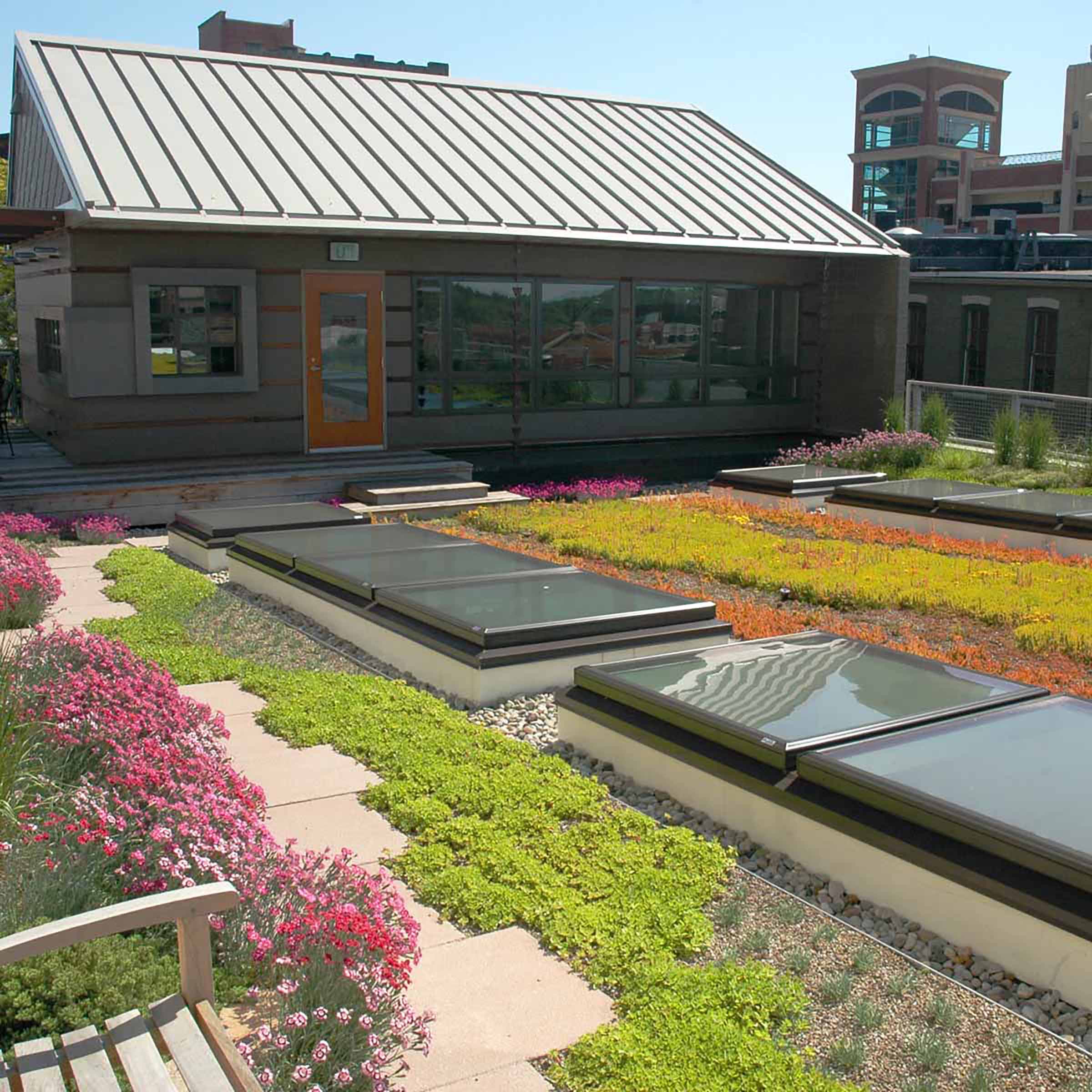 Sustainable elements incorporated into the design include rainwater collection, geothermal system, a green roof, solar power, and energy efficient lighting. A3C selected Huron Valley Electric for installation of the solar energy systems.