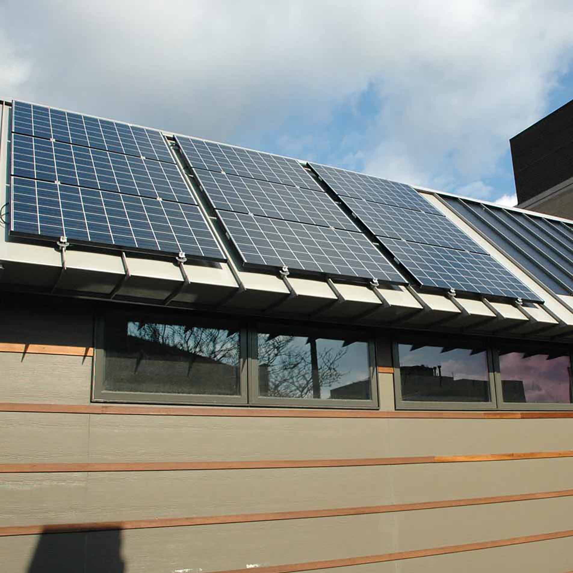 The 4kW solar energy system consists of photovoltaic arrays that utilize three different technologies. Most importantly, the solar power is tracked to assess and compare the performance and relative merits of each type of technology. Besides that, the system utilizes on online monitoring dashboard that publicly displays its performance to promote awareness and education.